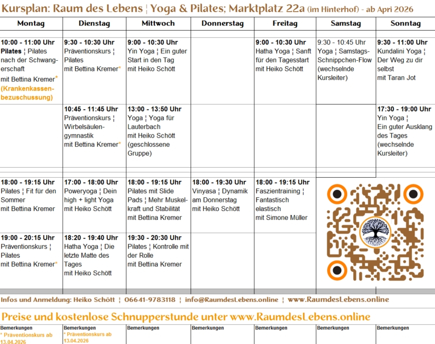 Neuer Kursplan - wähle aus dem vielfältigen Angebot.